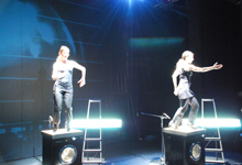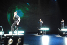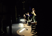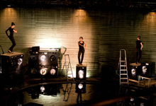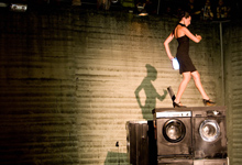 Das Ambiente, das deutlich von der Funktion konnotiert ist, die der grandiose Sala delle Grida Saal des Geschreis in der früheren Börse in Genua von den Architekten Coppedé einnahm, prägt die Performance Bolero della Borsa als einen Tanz, der das Fieber der Investitionen während der Börsenverhandlungen reflektiert: im dichten, zu- und abnehmenden Rhythmus der Füße (Zapateado) der drei Tänzerinnen Bruna Learchi, Silvia Dall’Orto und Romina Parisi, deren Plattform wie einst die Tische in den Pariser Cafés, auf denen abwechselnd Flamenco- und Bolerotänzer auftraten die laufenden Waschmaschinen von Reto Emchs Installation bilden. Zu den komplexen, nervösen Schritten kontrastieren die verführerischen Wellenbewegungen der Arme. Der bewegliche Klangteppich, der aus dem Geräusch der Sohlen und genagelten Absätze wahren Perkussionsinstrumenten , den Strophen des Sängers und dem elektronischen Sound entsteht, beginnt im kontinuierlichen Wirbel der Trommeln in den Wasch- und Trockenmaschinen zu vibrieren, zu rauschen und sich quasi zu verflüssigen. In eine Ausstattung, die der Zuschauer in seiner Gesamtheit erinnert, tritt mit dem Bolero della Borsa ein neuer Aspekt, der das Szenarium in gewisser Weise verwandelt, denn er löst eine Dynamik aus, die vielfältige sensorische und geistige Eindrücke erlaubt.